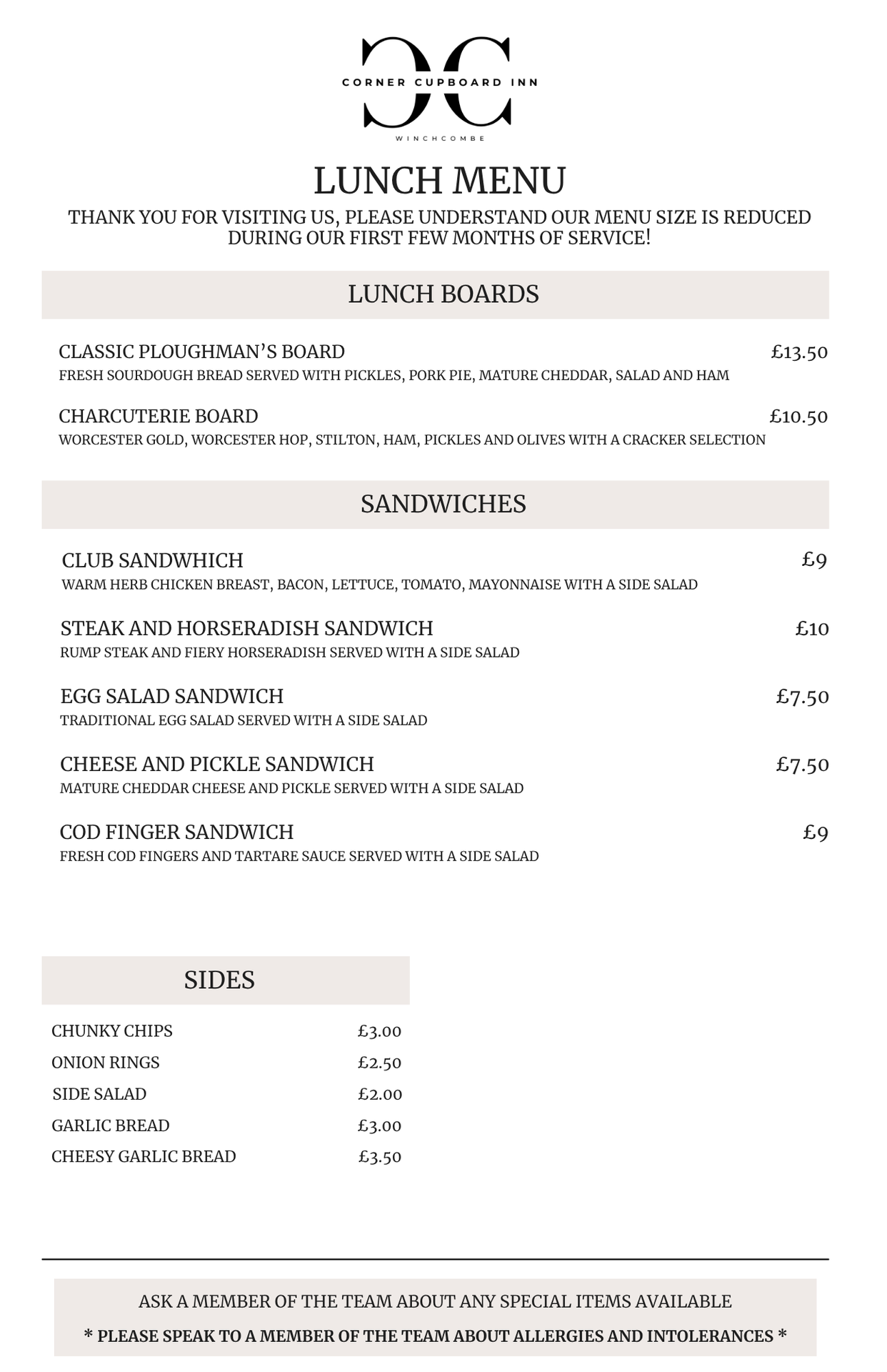 Lunch Menu (12-3pm)