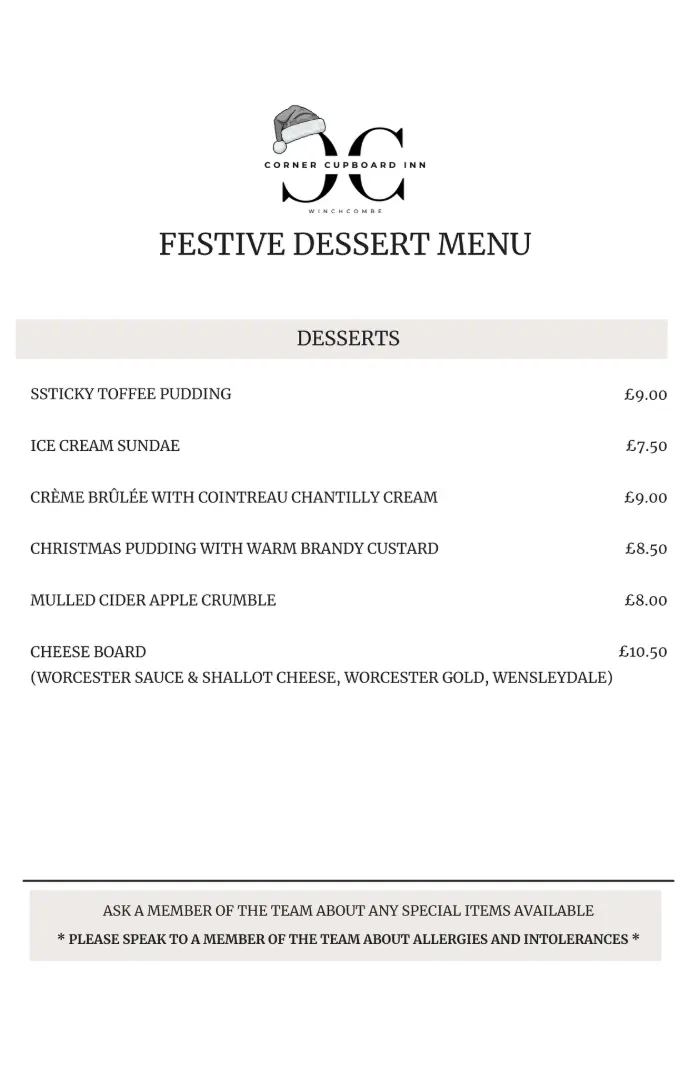 Dessert Menu